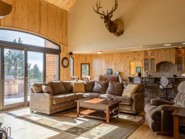 Gorgeous custom-built home situated on 78.67 acres of mountainside splendor with incredible views! This home features main floor living and an open concept and reflects quality with soaring ceilings, European windows and doors that bring the mountain setting in, and wood accents and trim that make this home feel like everything "Colorado". The main level features a gourmet kitchen, living room, dining room, and retractable wall/walk-out to the large wrap-around deck, all of which flow together making for easy daily living and fun entertaining. The master suite off of the living room is complete with a cedar-lined walk-in closet, skylights, walk-out to, and a five-piece master bath that boasts a jetted tub, and a spa steam shower. Off of the kitchen is a bedroom suite currently used as an office with its own full bath and a cozy turret sitting area. The main floor rounds out with laundry space, a half bath, and a huge mud room that could be an amazing sunroom/greenhouse. Upstairs features a bedroom suite, and another quaint turret sitting area, with a full bathroom with a jetted tub, excellent storage, and library space. There is a nice amount of square footage in the walkout basement waiting to be finished! This home is energy efficient with passive solar through Southern facing windows and doors, SIP construction, a concrete tile roof, a whole house backup generator, a heat recovery system, and radiant floor heat throughout. The oversized 3 car garage is heated and has hot/cold water and a walk-out to the deck. An additional detached 864 square foot garage can hold many toys or could be a nice workshop! The domestic well allows for an additional cabin! Views of many mountains and ranges, reservoirs, and the plains beyond are top-notch! Wildlife love this mountainside and visit the spring year round! World-class skiing 1.5 hours to the West and the Colorado Springs metro area is 1 hour to the East. Don't miss out on this incredible home!